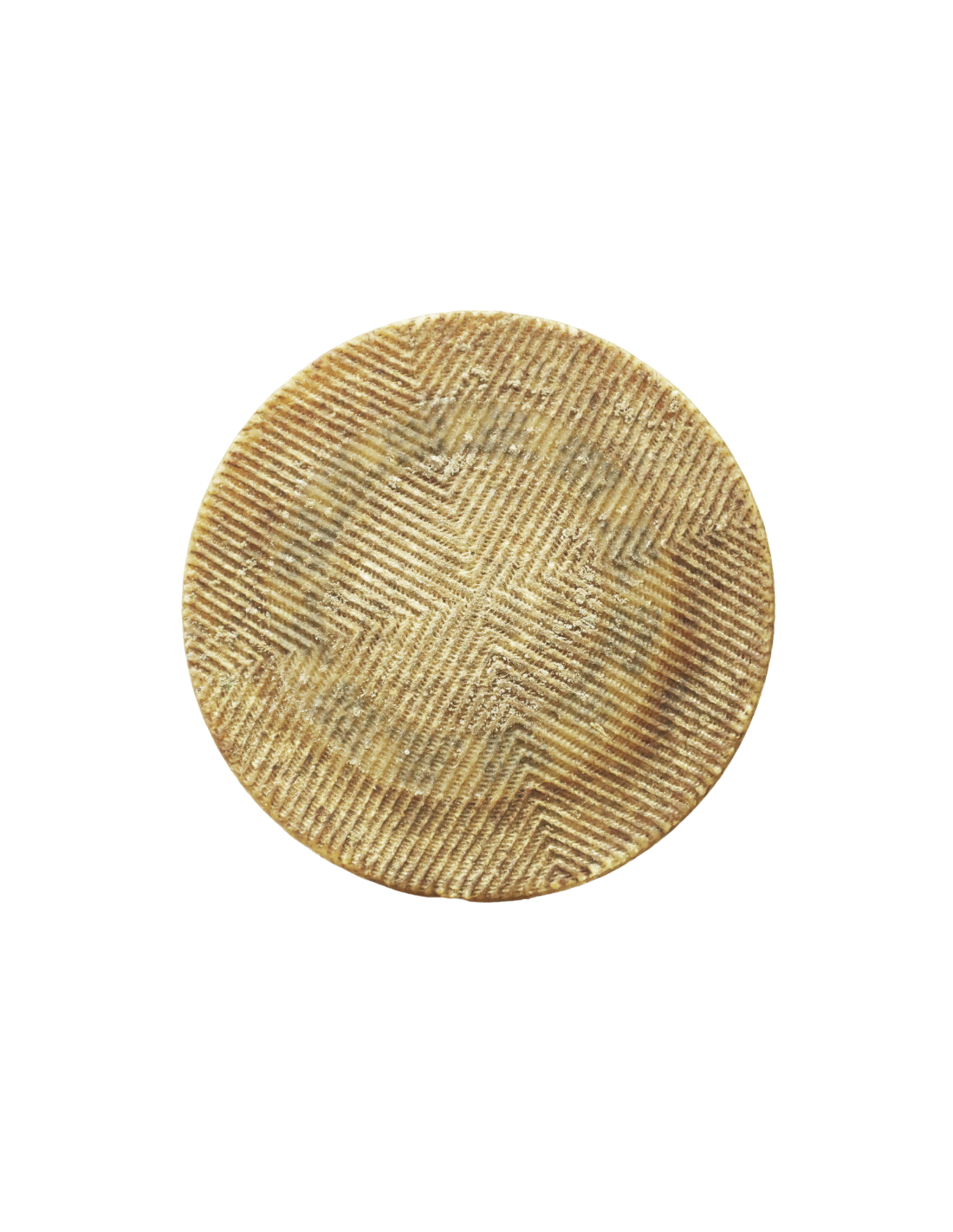 Cada pieza auténtica de queso manchego incluye una placa de caseína numerada en una de sus caras planas, garantizando su origen y calidad.